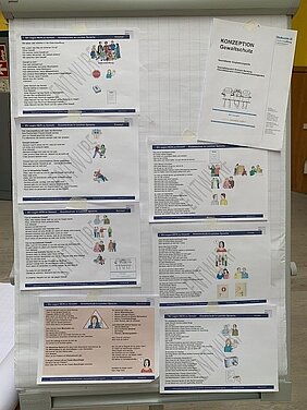 Im Geschäftsbereich Eingliederungshilfen wurde neben dem Gewaltschutzkonzept in schwerer Sprache eines in Leichter Sprache erstellt. Mit diesem hatten sich die Beiräte im Vorfeld beschäftigt und es wurde in der großen Runde verabschiedet. Es dient als Handreichung für die Klienten und gilt nicht nur für alle Wohneinrichtungen, sondern auch für die Werkstätten des Diakonieverbundes. Dieses Dokument besteht aus einem Konzept, das unser Verständnis von Gewalt innerhalb des Geschäftsbereiches beschreibt, einem Kodex, der das Verhalten in unseren Häusern regelt, und einem Merkblatt, das erklärt, was zu tun ist, wenn Gewalt erlebt wurde.