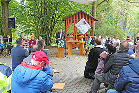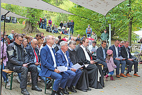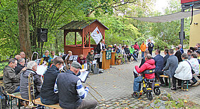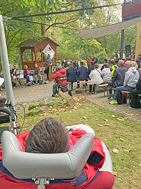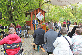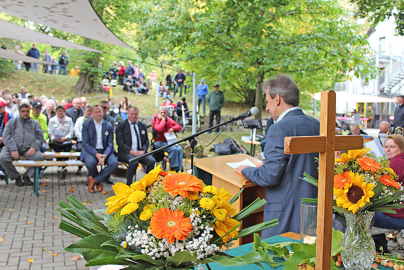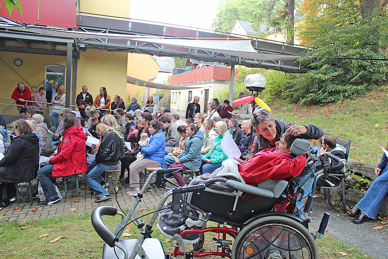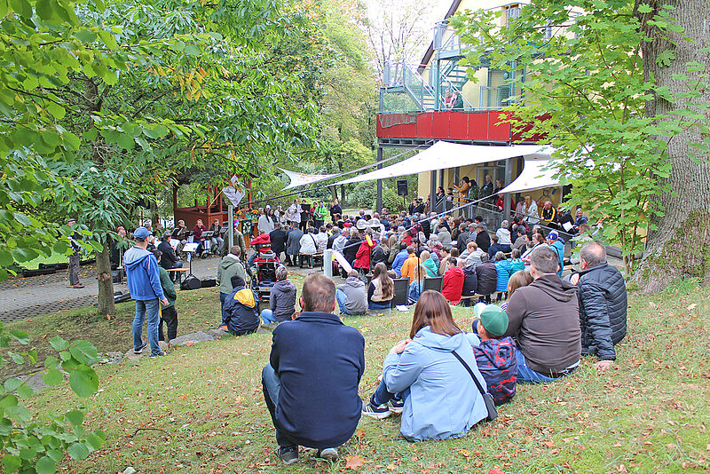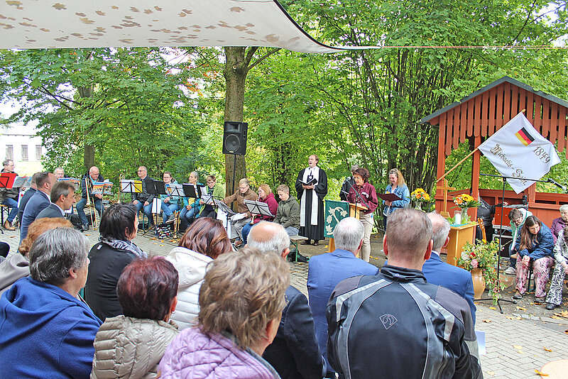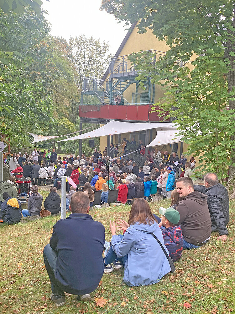 Höhepunkt war der Festgottesdienst unter freiem Himmel, am Holzpavillon mit festlich geschmücktem Altar, Musik vieler Posaunenbläser aus dem Oberland, dem Chor der Besonderen Wohnform und der Michaelsschule Bad Lobenstein. Pädagogen und Schüler spielten das Gleichnis vom Barmherziger Samariter, dem beliebten Beispiel für Nächstenliebe und die Aufforderung Menschen in Not zu helfen, auf moderne, mitreißende Weise nach und sorgten damit für Begeisterung.