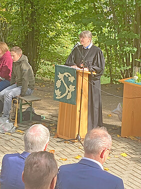 Einen weit gereisten Gast begrüßte er besonders herzlich, Oberin Annegret Bachmann vom Evangelisch-Lutherischen Diakonissenhaus in Eisenach, als Vertreterin der Diako Thüringen. Zu diesem großen Träger pflegt die Diakoniestiftung Weimar Bad Lobenstein schon lange eine enge Verbindung. Ab Januar 2026 wird diese auf eine neue Stufte gestellt. Beide Träger schließen sich zusammen, um die diakonische Arbeit und den Beitrag für die Gesellschaft, für das Land Thüringen, zu stärken. Oberin Annegret Bachmann war eingeladen, die Predigt zum Fest zu halten. Sie sprach über Engel und ihre Kraft, Gutes zu bewirken und auf andere auszustrahlen.