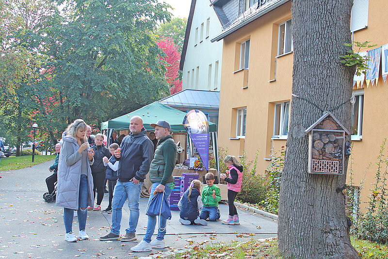 Auf dem Gelände, im Haus Michaelisstift und in der Diakonie-Tagespflege gab es viele Gelegenheiten zur Begegnung aller Generationen: Spiel und Spaß, Kreatives, Bastelangebote, ein Info-Stand des mobilen Seniorenbüros, Verkaufsstände der Werkstätten Christopherushof und der Vogtlandwerkstätten in Stelzen. Kutschfahrten, Pony streicheln, Büchsenwerfen und Entenangeln waren nicht nur bei den Kindern gefragt. Kaffee, Kuchen, belegte Brötchen, Gebratenes vom Rost, Getränke, Eis und Molkereiprodukte aus Altengesees sorgten traditionell für kleine Gaumenfreuden. Die Besucher ließen sich von Musik begleiten, genossen die Begegnungen mit Freunden und Nachbarn, Weggefährten und ehemaligen Kollegen.