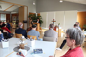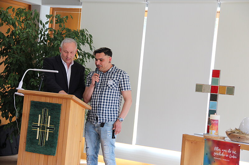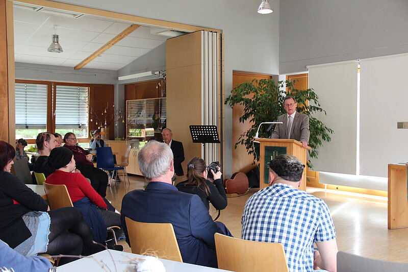Der gelungene Schichtwechsel fand mit einer festlichen Andacht im Speisesaal der Werkstätten einen besonderen Abschluss. Weit mehr als 100, in der Werkstatt beschäftige Menschen waren dabei und sangen mit, als Bettina Schmidt, Vorsitzende der Geschäftsbereichsleitung Eingliederungshilfen, und Christfried Kerst, Werkstattleiter Sozialer Dienst, das Lied "Vertraut den neuen Wegen" anstimmten. Auch Thüringens Ministerpräsident, der zu den Teilnehmern sprach, sang mit und dankte für die Liedwahl, denn dieses ist in Thüringen entstanden. Der Text war ein Geschenk des Jenaer Theologieprofessors Klaus-Peter Hertzsch an sein Patenkind zu ihrer Hochzeit.