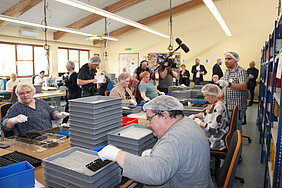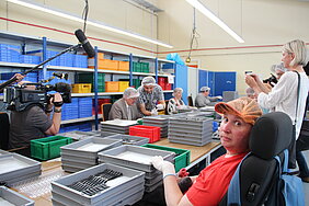 Thüringens Ministerpräsident Bodo Ramelow war am Montag, 8. April 2024, zu Gast in den Werkstätten Christopherushof am Standort Saalfeld. Dort ist er für einige Zeit in die Rolle von Paul Knight geschlüpft, um seine Arbeit im Montagebereich der Werkstätten zu verrichten. Damit hat der Regierungschef sein Versprechen vom Oktober 2023 eingelöst. Damals war Paul Knight im Rahmen der Aktion Schichtwechsel für einige Stunden im Servicebereich der Thüringer Staatskanzlei in Erfurt tätig.